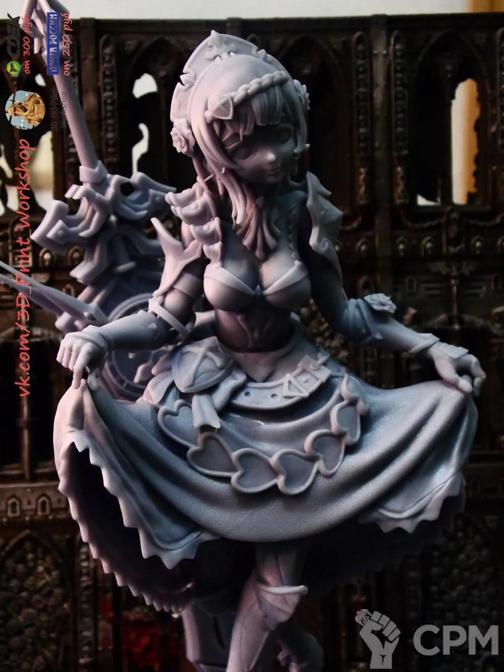 Заказал несколько моделей разных масштабов. Качество печати и детализация хорошие, материал имеет небольшую эластичность. По срокам работы - заказ выполнен довольно быстро. Упаковано хорошо, посылка доехала почти без повреждений, сломалась прядь волос у одной из фигур. Заказом доволен