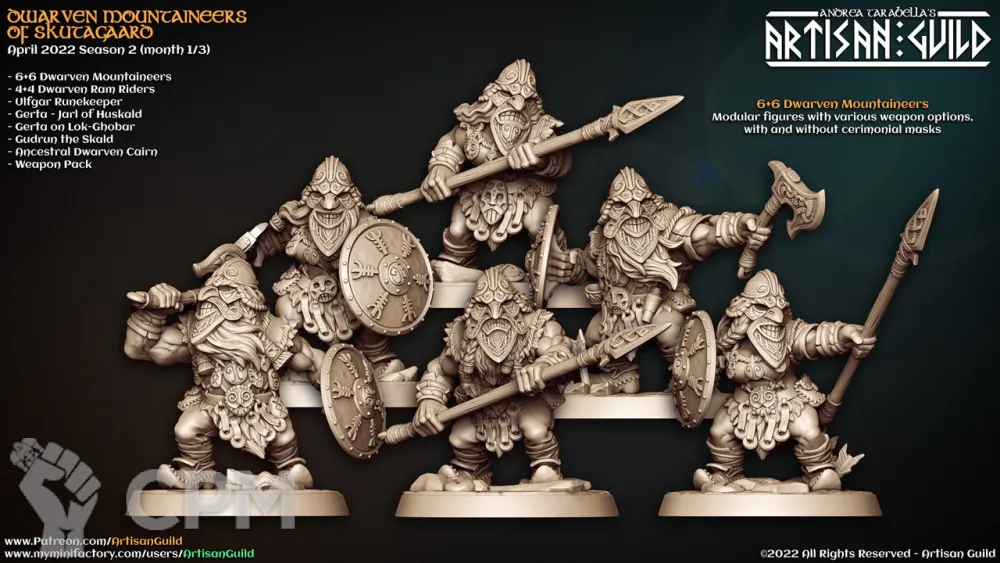 Получил товар. Всё хорошо, детализация лучше, чем в литейках, дефектов, характерных для литья, нет. Сам набор очень разнообразный. Однако, у некоторых луков произошло смещение при печати, некоторые тонкие детали погнулись (копья, плоские щиты, мечи, кинжалы), не обнаружил некоторых вариантов оружия, рук и голов (но там голов и так больше 40 видов, так что мне хватило).