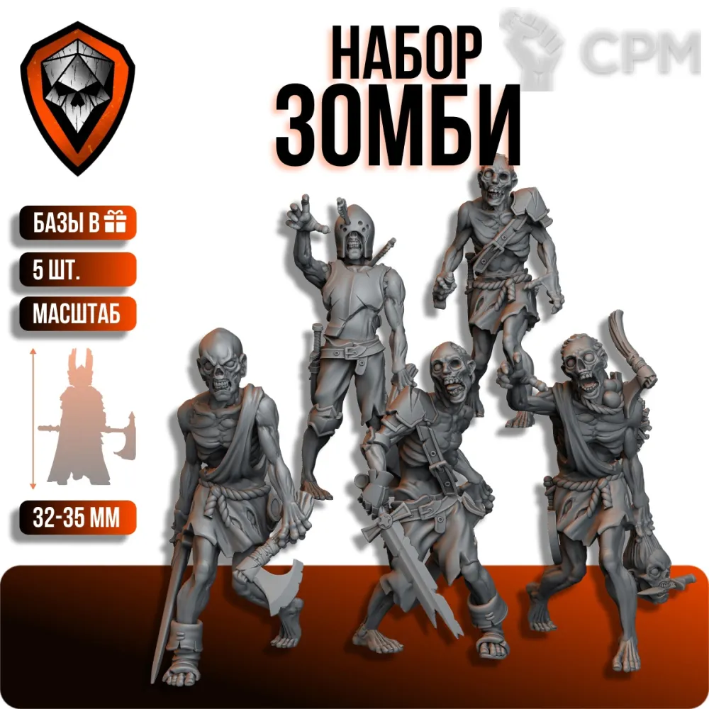 "Андеды" миниатюры для днд 35 мм 5 шт. Набор миниатюр для настольной игры DnD, Pathfinder (НРИ), масштаб 32 мм (1:56)
