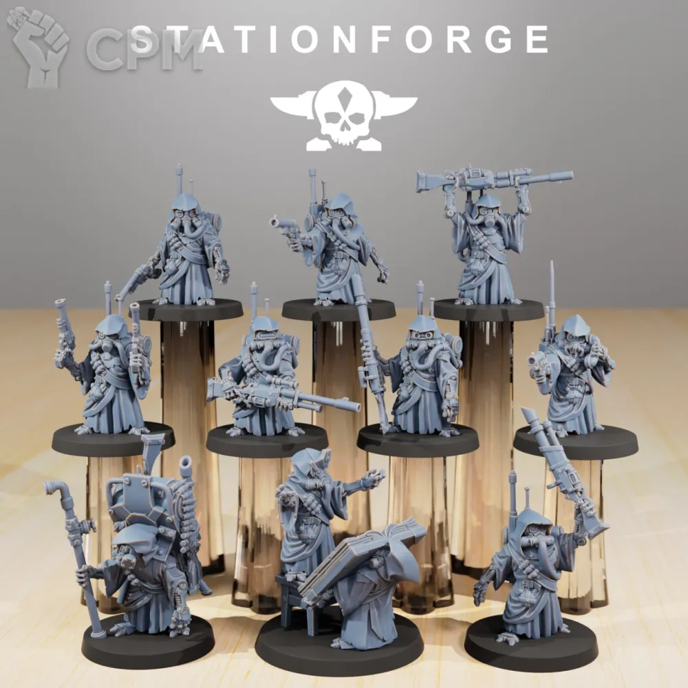 Миниатюры напечатаны на фотополимерном 3д принтере с толщиной слоя в 0.03 мм. В комплекте 11 миниатюр. Комплект как представлено на фото, возможна печать дополнительных миниатюр или битсов.