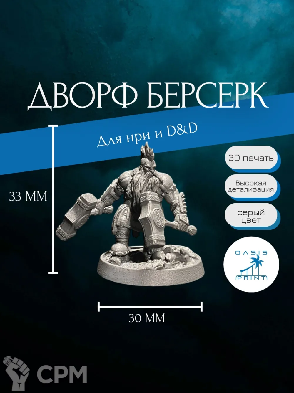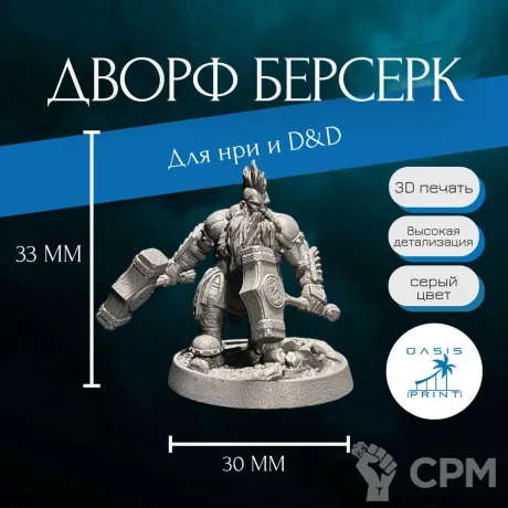 Миниатюра дворф - Размер: 30-35 мм, база: 25-30 мм.