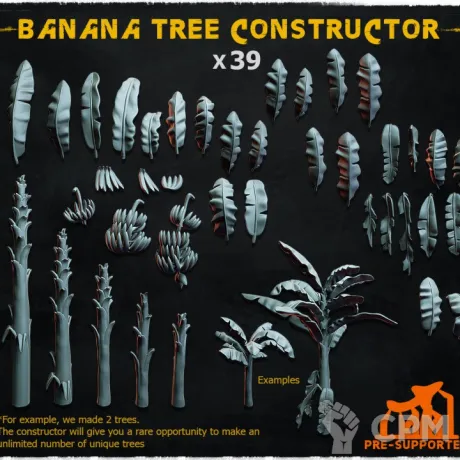 Набор из 42 деталей для сборки банановых деревьев - 5 стволов, 30 деталей с листвой, 7 связок бананов. Подойдёт для украшения подставок или террейна.