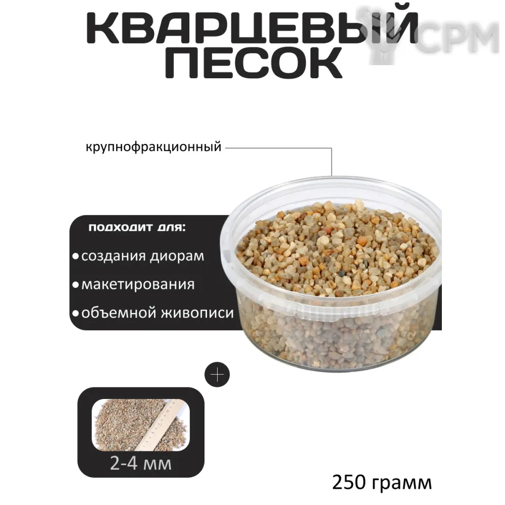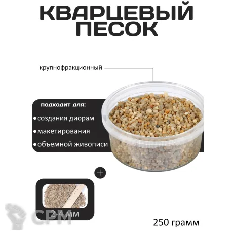 Кварцевый песок фракции 2-4 мм — это гранулированный материал, представляющий собой идеальное решение для создания реалистичных диорам и художественных работ. Обладая уникальными характеристиками и широким спектром применения, этот песок становится незаменимым элементом в арсенале любителей моделизма и живописи.