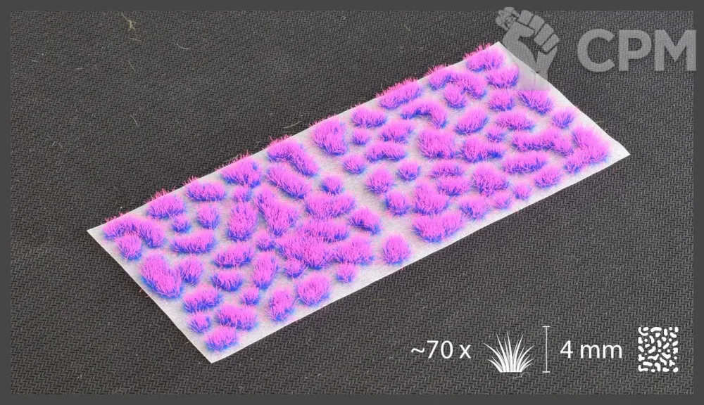 Alien neon - смешанный синий и розовый. Идеально подходит для научно-фантастических и магических тем. Один лист размером 14,5 x 6,5 см, полный пучков Gamer's Grass. Пучки имеют высоту 4 мм. Около 70 пучков на листе.