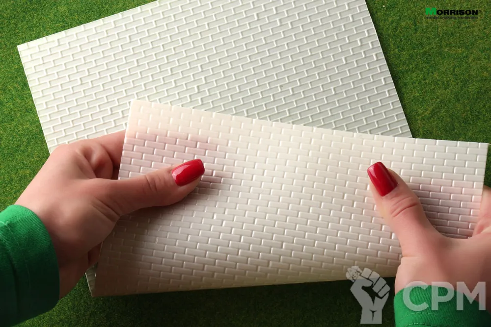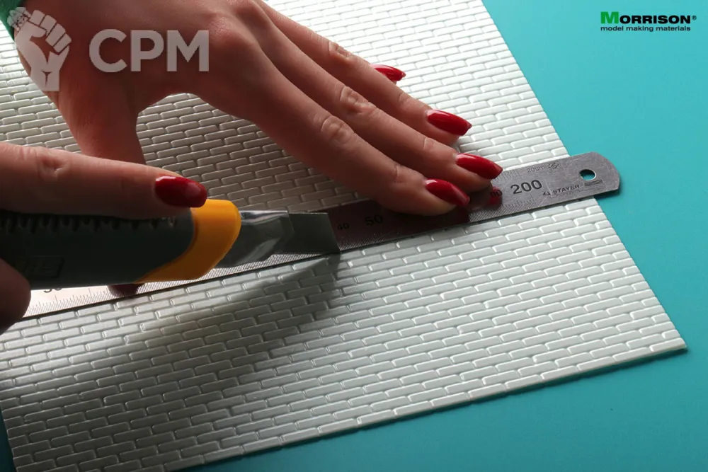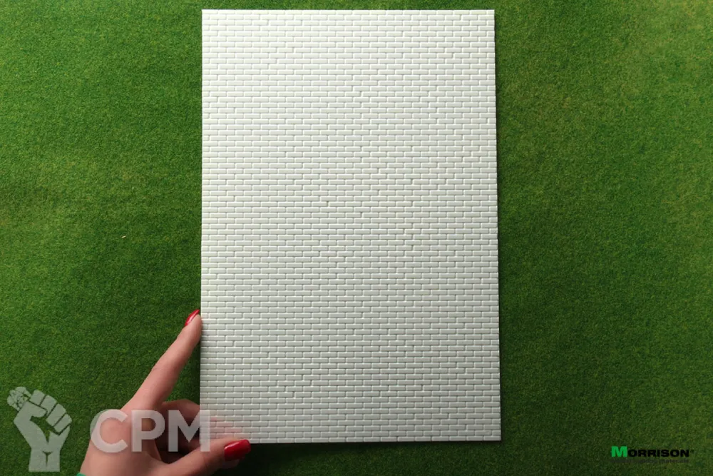 Объёмная текстура кирпичной стены в М 1/24 (1/25) для миниатюр в листах формата 19 см. х 28 см. Толщина пластика 0,3мм. Окрашивается акриловыми колерами и любыми аэрозольными эмалями, легко гнется и режется макетным ножом или ножницами.
