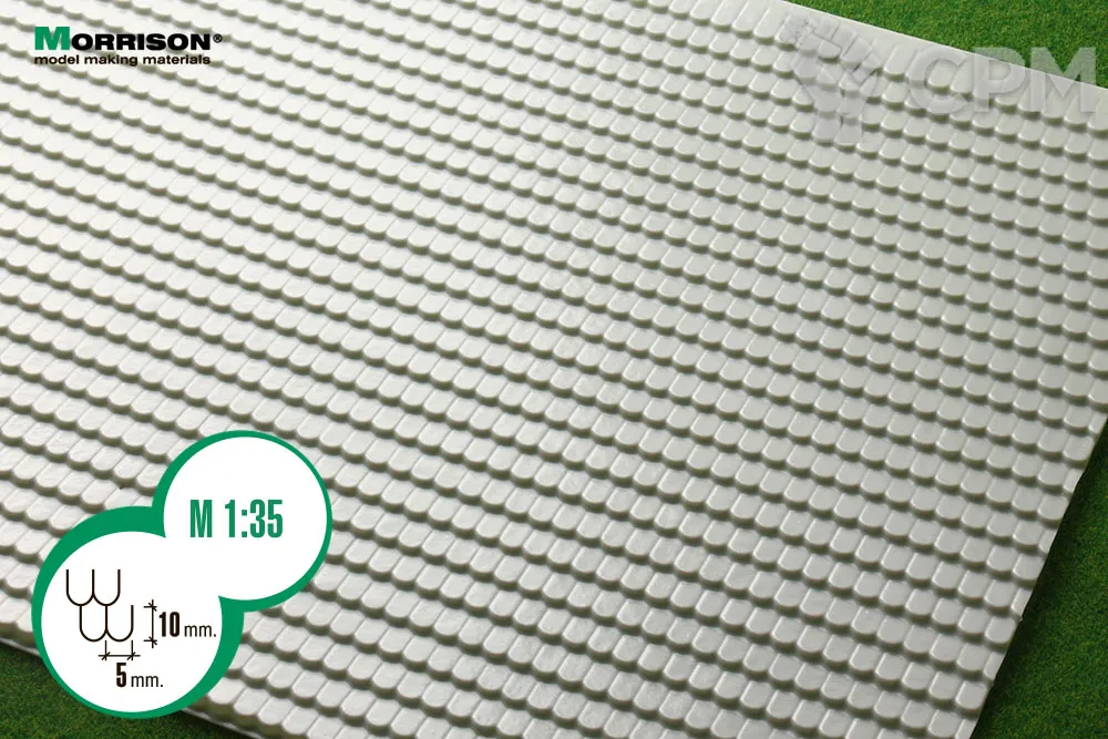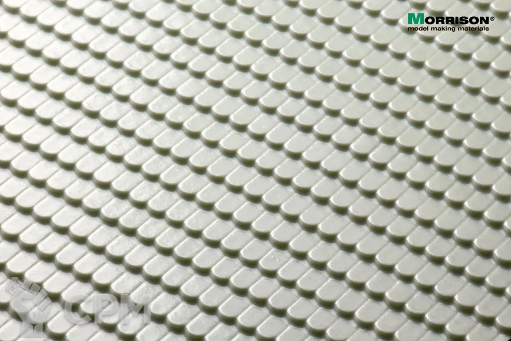 Объемная пластиковая текстура кровельной черепицы «Бобровый хвост». Применяется при создании миниатюр, диорам и макетов в масштабе 1/30, 1/32, 1/35. Размер пластиковой панели 380мм.х280мм. (28х38 см.). Толщина пластика 0,3мм.