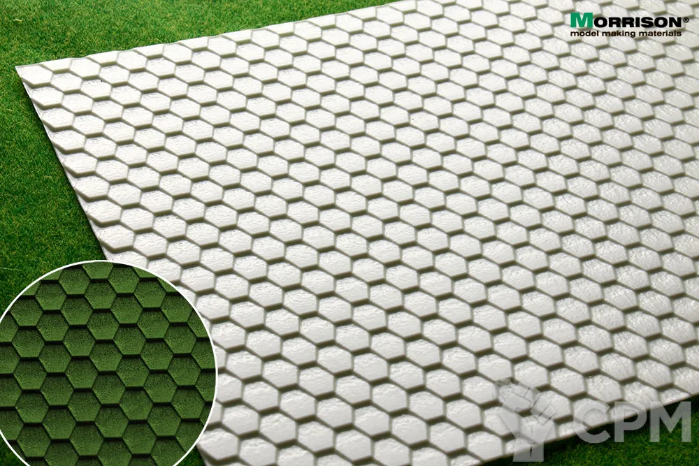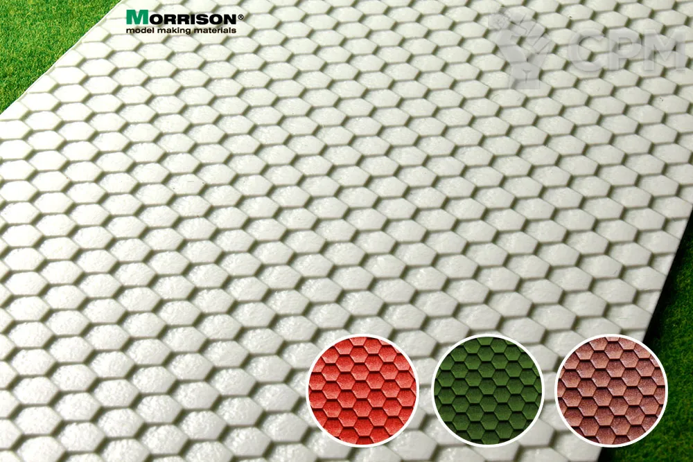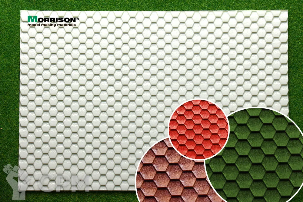 Объемная пластмассовая текстура шестигранной черепицы Шинглас для кукольных домиков и румбоксов в масштабе 1/24, а так же диорам и макетов в масштабе 1/20 или 1/25. Размер пластиковой панели формат А4- 190мм. Х 280мм. (19х28 см.).