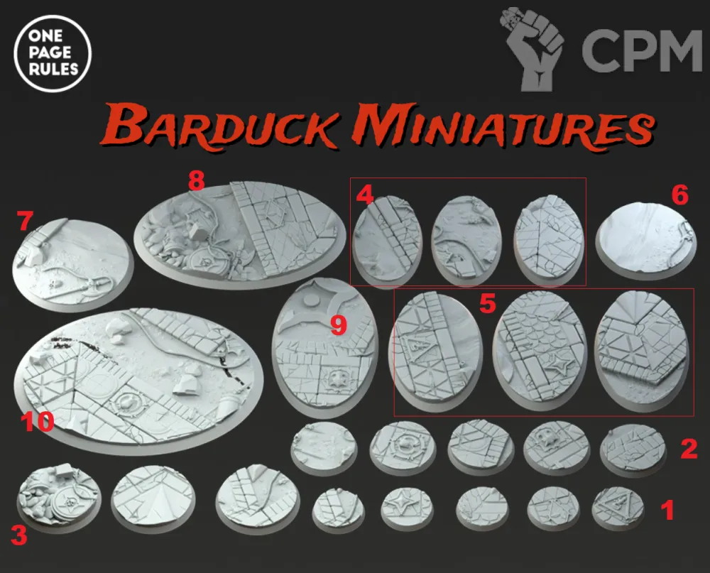 Набор из 3 баз для миниатюр по вселенной Вархаммер из высококачественной фотополимерной смолы, изготовлены на высокоточном 3D принтере. Поставляются в неокрашенном виде. На фото №6.