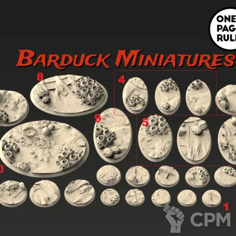 Набор из 3 баз для миниатюр по вселенной Вархаммер из высококачественной фотополимерной смолы, изготовлены на высокоточном 3D принтере. Поставляются в неокрашенном виде. На фото №6.