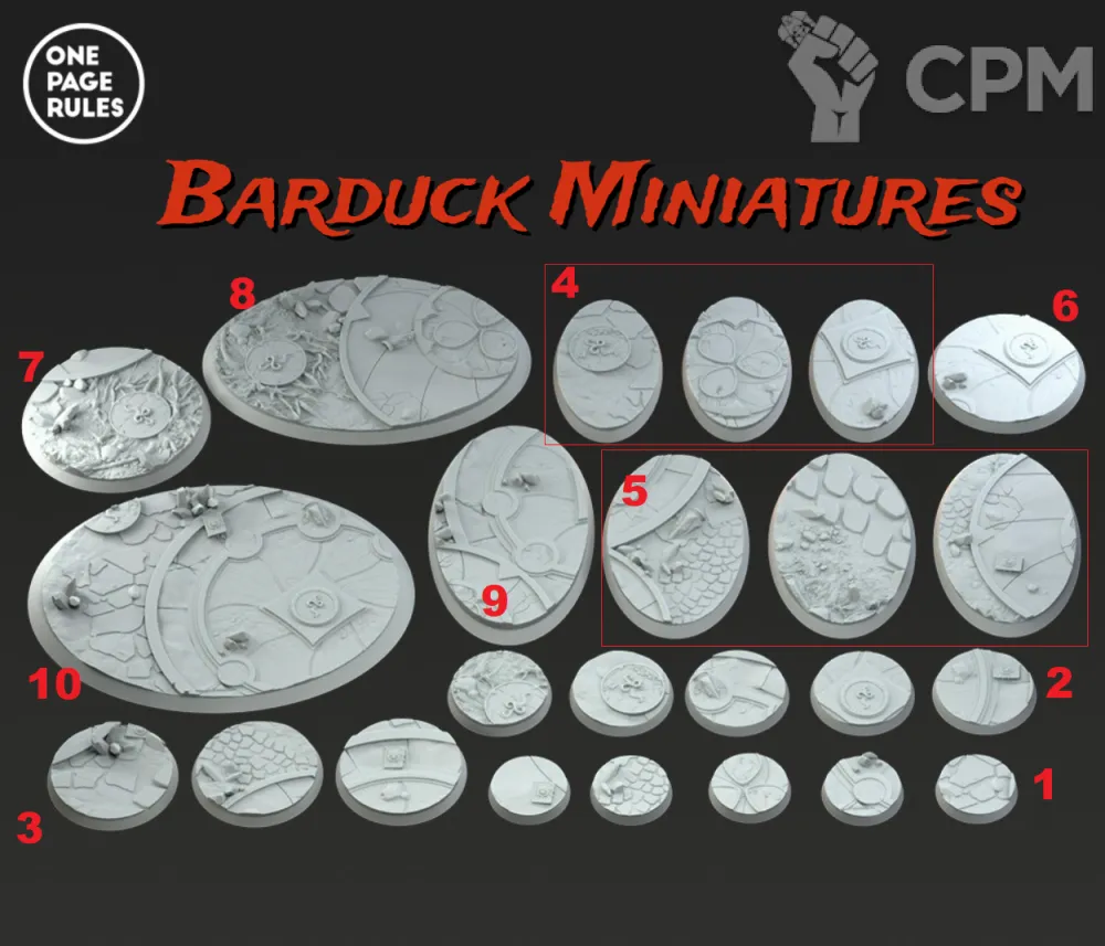 Набор из 10 баз для миниатюр по вселенной Вархаммер из высококачественной фотополимерной смолы, изготовлены на высокоточном 3D принтере. Поставляются в неокрашенном виде. На фото №1.