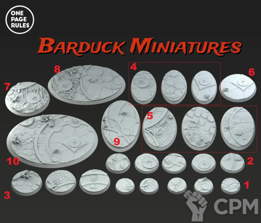Набор из 10 баз для миниатюр по вселенной Вархаммер из высококачественной фотополимерной смолы, изготовлены на высокоточном 3D принтере. Поставляются в неокрашенном виде. На фото №2.