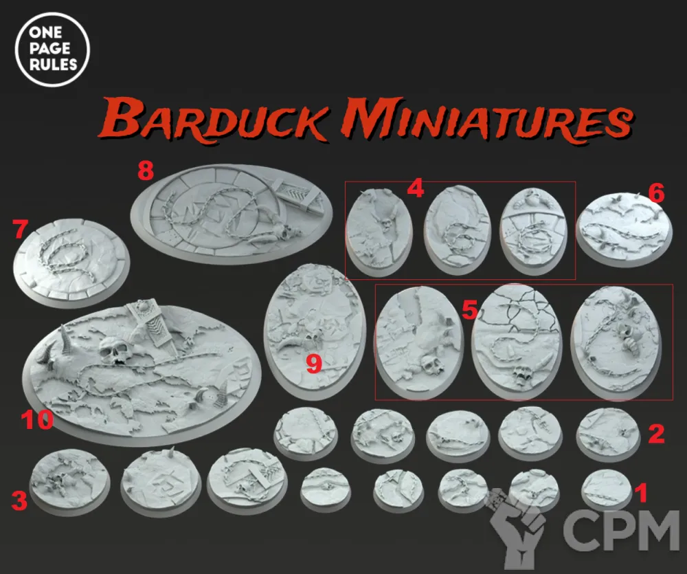 Набор из 2 баз для миниатюр по вселенной Вархаммер из высококачественной фотополимерной смолы, изготовлены на высокоточном 3D принтере. Поставляются в неокрашенном виде. На фото №9.