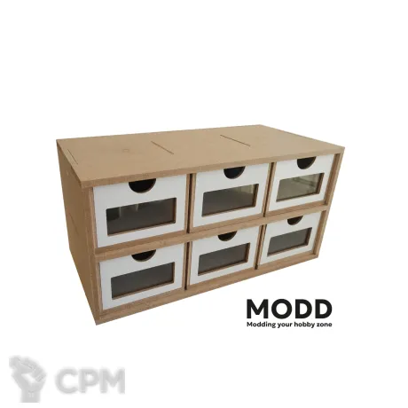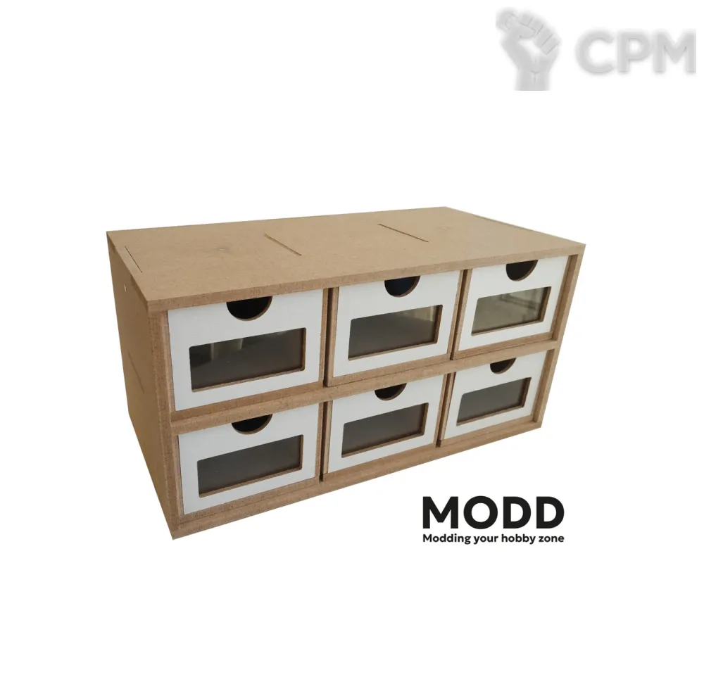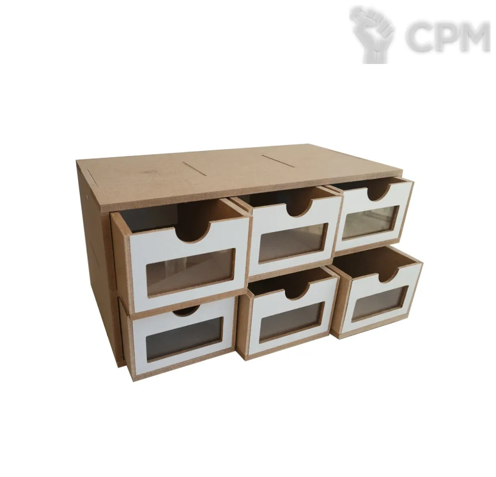 Органайзер для хранения с шестью ящиками и прозрачными окнами из акрила.
