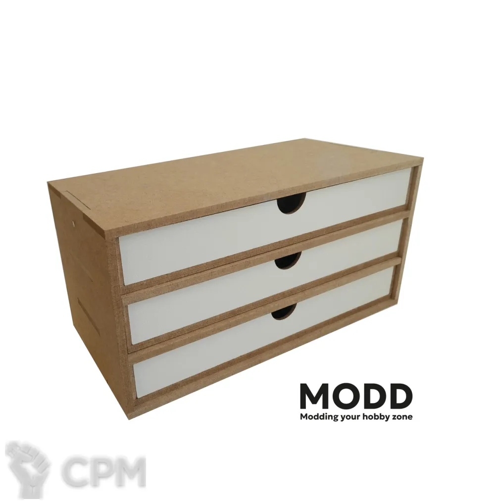 Органайзер для хранения с тремя горизонтальными ящиками.