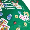 В то же время, сукно обеспечивает и чисто практические преимущества. Так пластиковые покерные карты удобно ложатся на ткань, и игрокам не составляет никакого труда подцепить их рукой, как это обычно бывает при игре в покер на обычном столе. Кроме этого, важным плюсом игры в покер на профессиональном сукне является то, что мягкая плотная ткань обеспечивает более длительный срок службы покерных фишек.