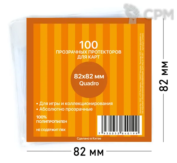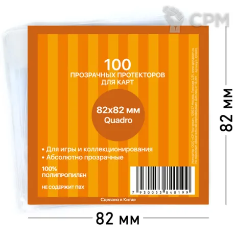 Упаковка из 100 прозрачных протекторов Card-Pro для карт. Абсолютно прозрачные протекторы размером 82х82 мм вмещают в себя карточки шириной до 81 мм и высотой до 81 мм включительно.