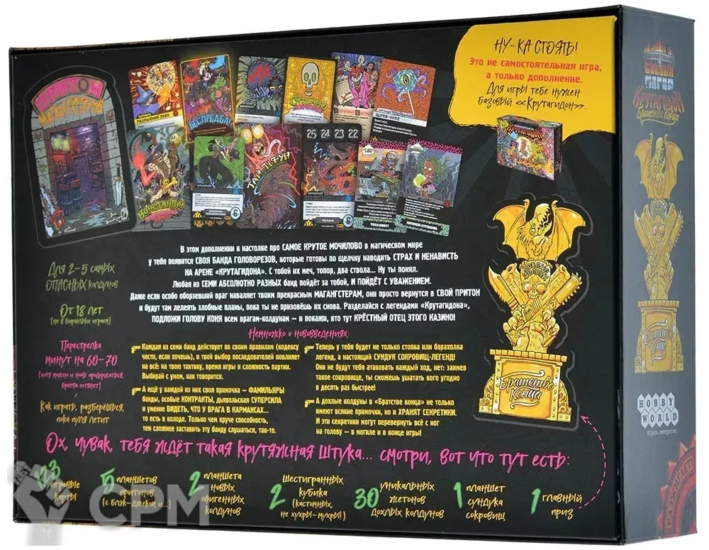 Дополнение "Братство конца" вводит в "Крутагидон" принципиально новый элемент: БАНДЫ ГОЛОВОРЕЗОВ! Да, теперь с каждым из вас будет свита МАГАНГСТЕРОВ, принадлежащих к одной из семи банд. Тут вам и Стоячие Мертвецы, и Крысы-Скейтеры с Марса, и даже БЛИНЫ СОТОНЫ (вы просто сдохнете, когда увидите, НА ЧТО они способны). Каждая банда обладает своими фишками и уровнем сложности, так что хорошенько подумайте, готовы ли вы взять под своё крыло таких крутых ребят.