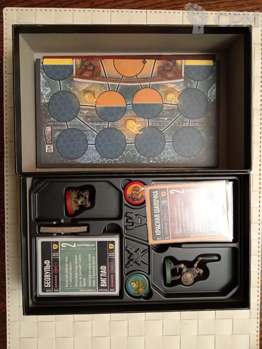 Новая коробка. Роспись фигур на фото. Все карты в протекторах.