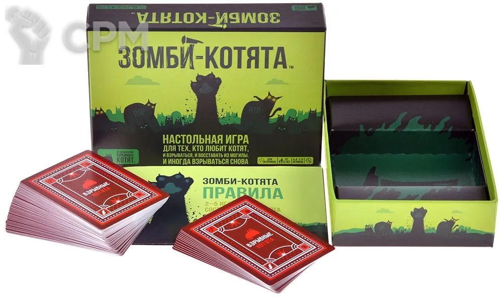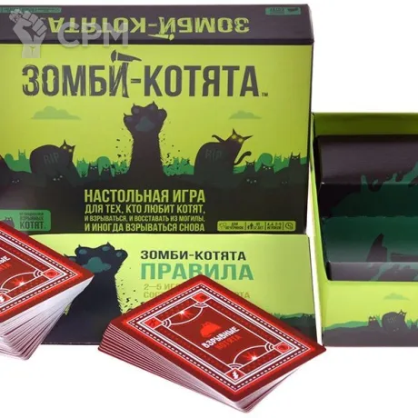 "Зомби-котята" – это новый взгляд на полюбившуюся многими карточную игру "Взрывные котята". Вам стало мало возможностей классической версии? Уже приелись горячие и откровенные шутки версии "18+"? Тогда "Зомби-котята" – это то, что вам нужно! Всё та же стратегическая "русская рулетка" с простыми правилами и бодрым игровым процессом, но наполненная новыми способами зажечь за столом! Тащите карту из колоды и молитесь, чтобы взрывной котёнок не попался вам в руки, однако теперь простым вылетом из игры вы не отделаетесь...