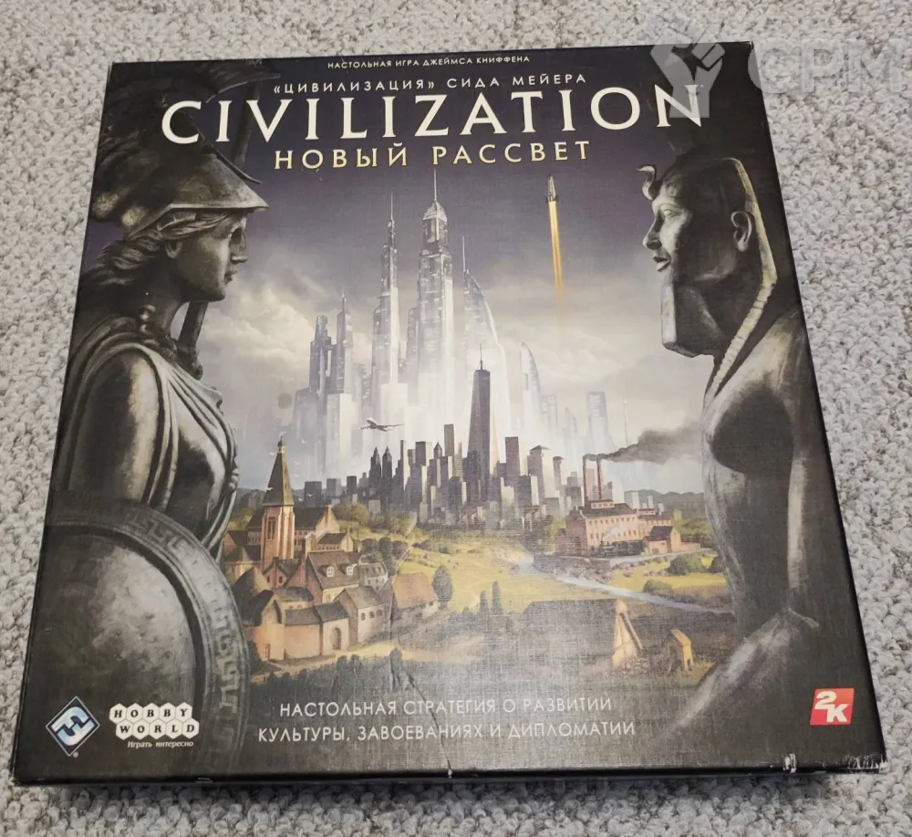 "Цивилизация" Сида Мейера: Новый рассвет" – новая настольная глобальная стратегия, в которой игроки берут под свой контроль одну из восьми великих цивилизаций и стремятся привести её к мировому господству. Делать это придётся на протяжении многих эпох, начиная с каменного века и заканчивая веком нанотехнологий.
