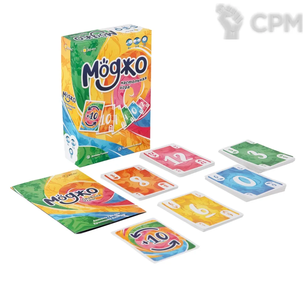 "Моджо" — быстрая карточная игра, в которой игроки будут избавляться от карт. Карты, оставшиеся в руке к концу раунда, принесут очки, а для победы нужно набрать меньше всех очков. Несмотря на кажущуюся простоту и динамичность, в игре есть место для стратегии, ведь путь к победе будет меняться в зависимости от ваших карт, количества участников и, конечно, удачи.