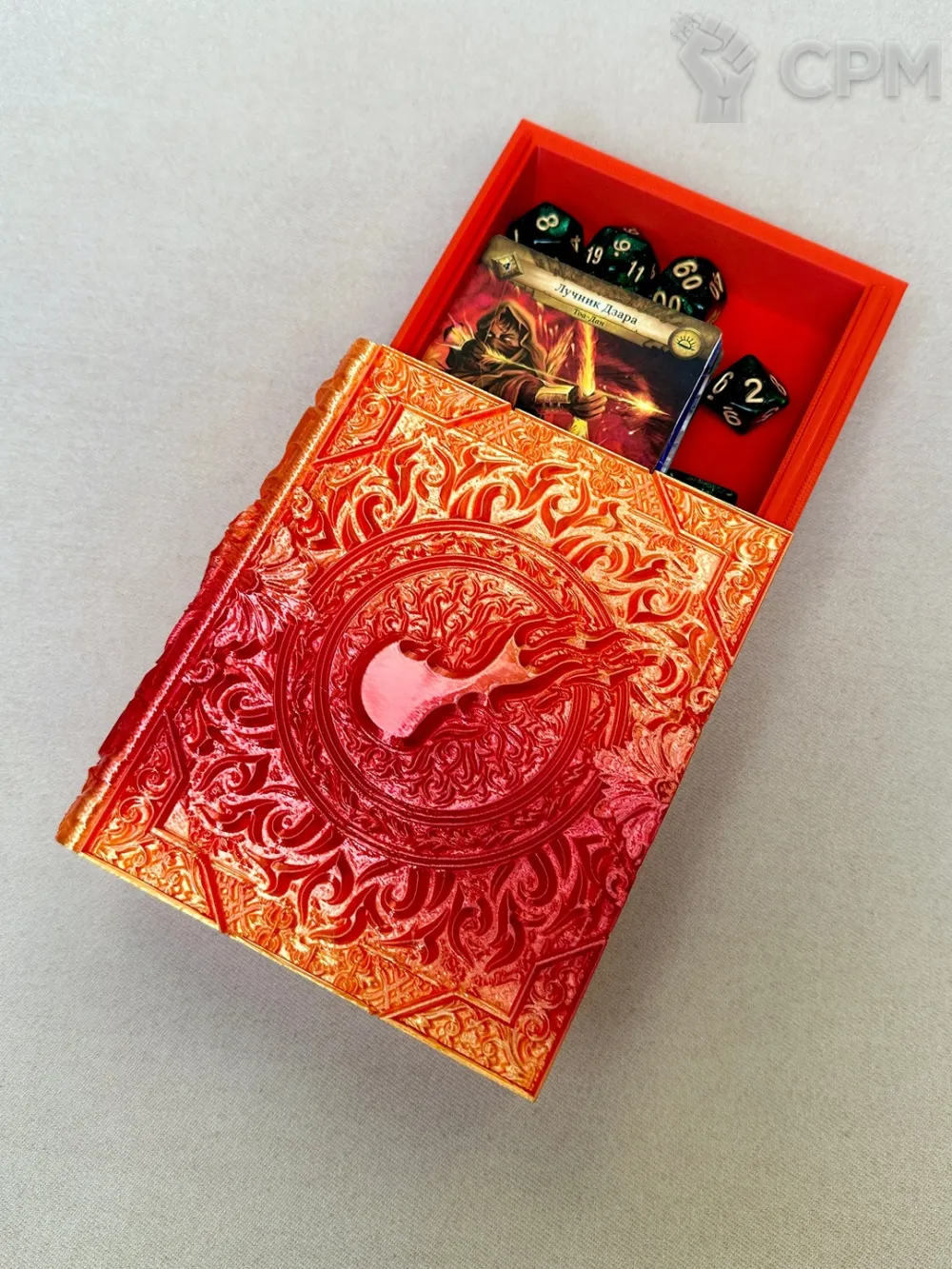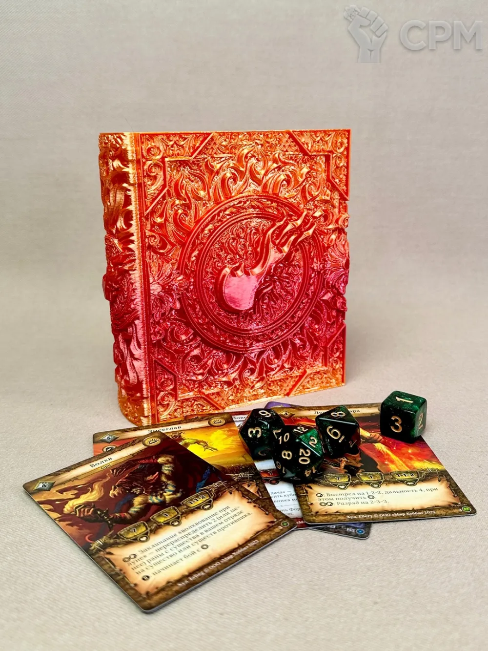 Коробка для хранения карт и кубиков "Книга Магия Огня" (Fire Magic Tome) для НРИ, DnD
