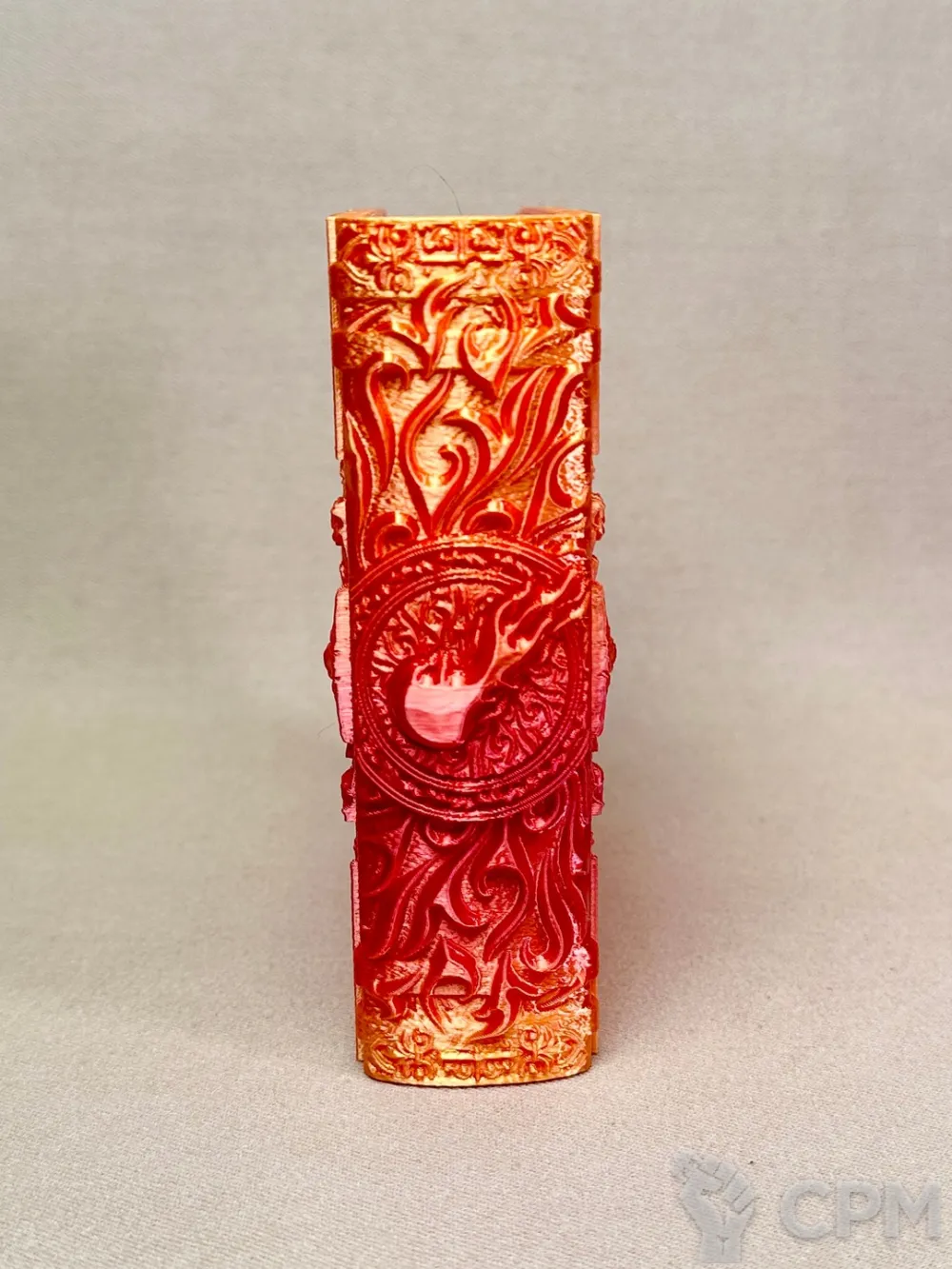 FDM печать, слой 0,2 - 0.12мм. PLA пластик, PLA шёлк, цвет красный-желтый (бокс) и красный (трей).