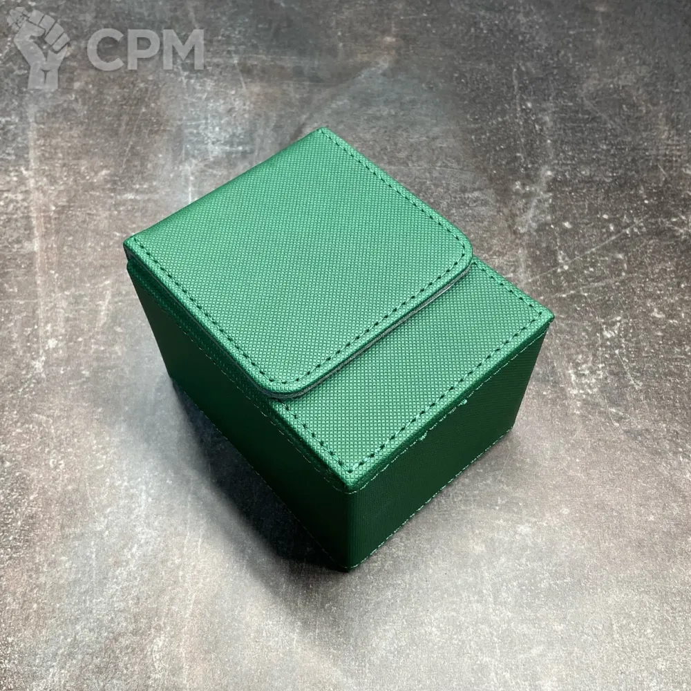 Декбокс для ККИ кожаный премиум на 100 карт в одиночных протекторах, либо на 80 карт в двойных. Магнитные застежки, мягкая обивка внутри.