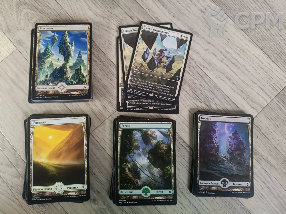 + 98 полнокартиночных земель из Зендикара (32 пустоши, 27 равнин, 21 лес, 18 болот)