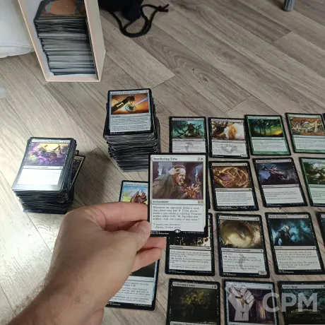 Стартер оржовых + много зелёных, чёрных и белых карт. Куча сетов, начиная от Тероса и Зендикара, заканчивая Иннистрадом и Равникой.