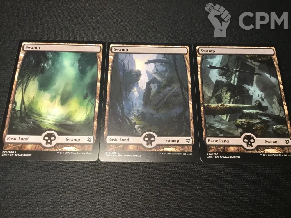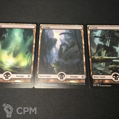 Zendikar Rising Swamps. Болота из выпуска "Расцвет Зендикара". 40 р/шт. Цена указана за одну землю. В комментарии к заказу указывайте, какие конкретно земли и в каких количествах требуются.