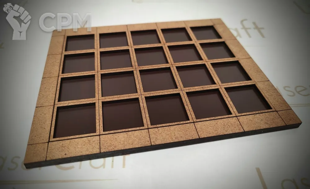 Трей 5х4 ряда с бортом 0,5 дюйма и металлической поверхностью. В подошве трея установлены 2 магнита диаметром 5мм.