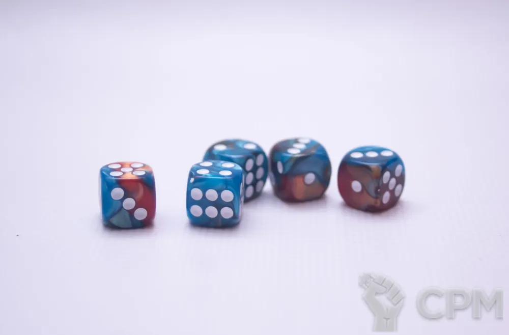 Кости Д6 12 мм. многоцветные сине-зелено-золотые - 5 шт.
