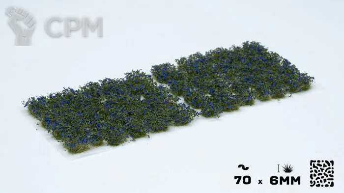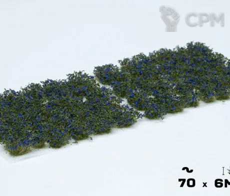 Also useful to recreate bushes with ripe bluish fruits like blueberries, brambles or cassis. Your bases and dioramas will become surprisingly appealing. Пучки покрыты голубыми лепестками и зелеными листьями. Лучше всего использовать для имитации кустарников с голубыми цветками, таких как грумвелл, калифорнийская сирень, гортензии, буддлии и темно-синие садовые цветы, такие как шалфей и дельфиниумы.