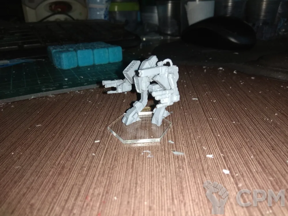 ОПИСАНИЕ: Тяжелый мех Hellfire был создан кланом Звёздного Ужа на базе «Люпуса». Здесь описание в TRO 3067 несколько расходится с Era Digest: Golden Century. Hellfire по своим характеристикам несколько отличается от омни-меха первого поколения (хотя определённое внешнее сходство сохранилось). Главное отличие заключается в использовании менее мощного двигателя и в отказе от эндо-стали. Не исключено, что Ужи таким образом удешевили свой новый мех второй линии при постановке в серийное производство.Основной вариант Hellfire при расчетной массе шасси 60 тонн развивает скорость 4/6 и оснащен миомерным ускорителем. 172 единицы брони (9 тонн ферро-волокна) являются, скажем прямо, слабоватой защитой для тяжелого меха с такой скоростью. Несколько повышает фактическую живучесть тот факт, что мех откровенно перегружен вооружением. Его арсенал состоит из большого тяжелого лазера, двух средних тяжелых лазеров, двух малых тяжелых лазеров, двух средни