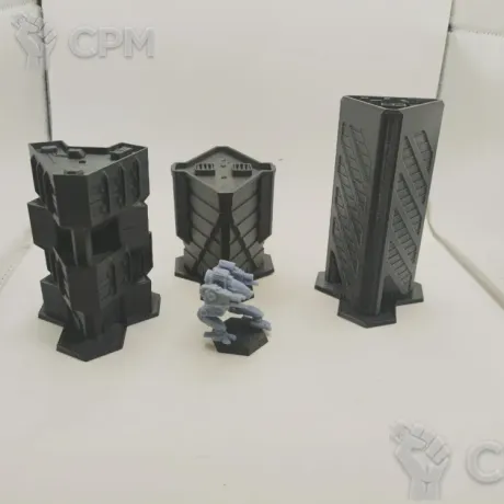 3 здания баттлтек. Мех для масштаба. У зданий базки съемные.