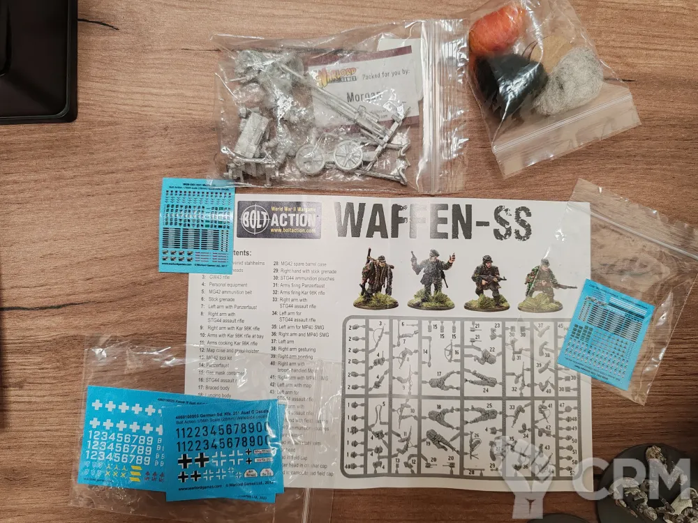 Полный набор waffen ss, оригинал, танки и пт орудие не собраны, миниатюры собраны не окрашены, декали в наличии, литники с доп запчастями в наличии, коробка отсутвует