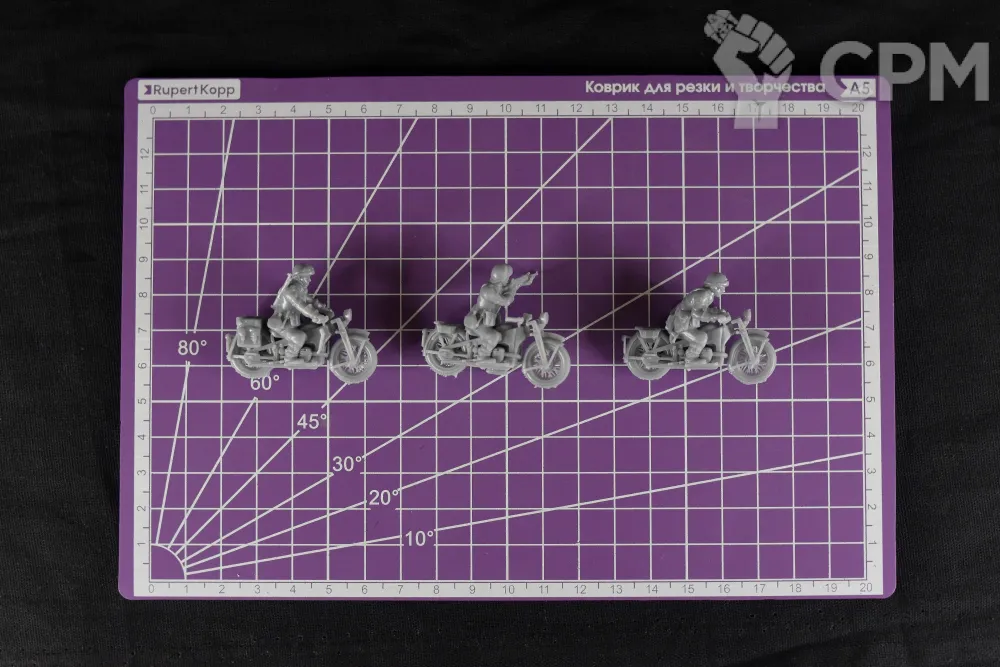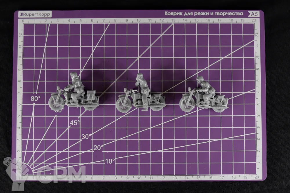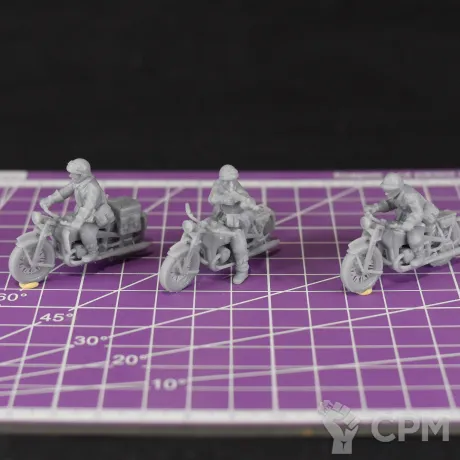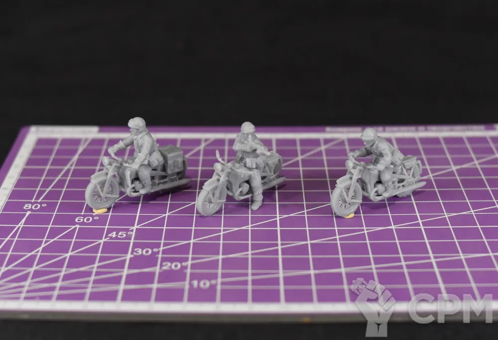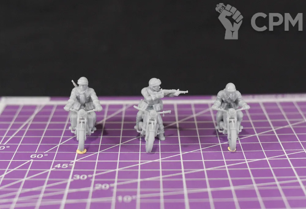 Миниатюры французских мотоциклистов из состава драгунских полков механизированных дивизий на период 1940 года в масштабе 1/56 (28мм). Подойдет для варгеймов, либо для творчества (создания виньеток, диорам и т.п.).