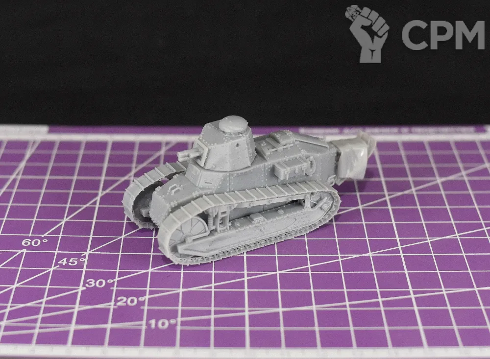 Модель французского легкого танка Renault FT-17 в масштабе 1/56 (28мм) с пушкой SA18. Подойдет для варгеймов, либо для творчества (создания виньеток, диорам и т.п.).