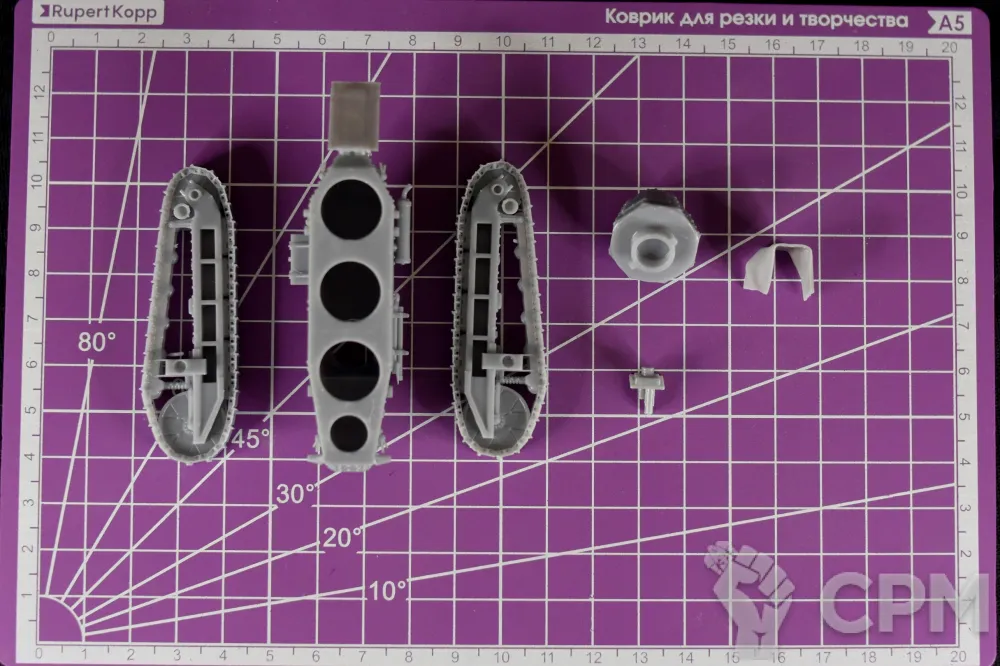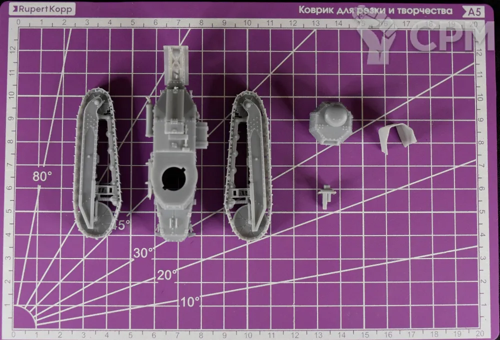 Модель состоит из корпуса, гусениц, башни, башенного орудия и брезента на "хвост". Модель снята с поддержек, промыта и засвечена ультрафиолетом. Могут наличествовать следы от поддержек - аккуратно удалите их модельным ножом, либо шкуркой.