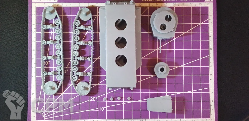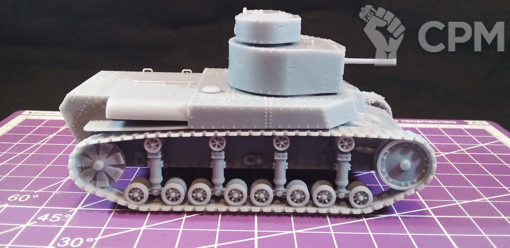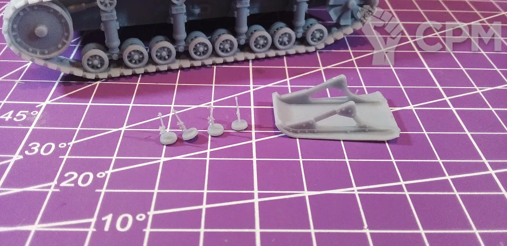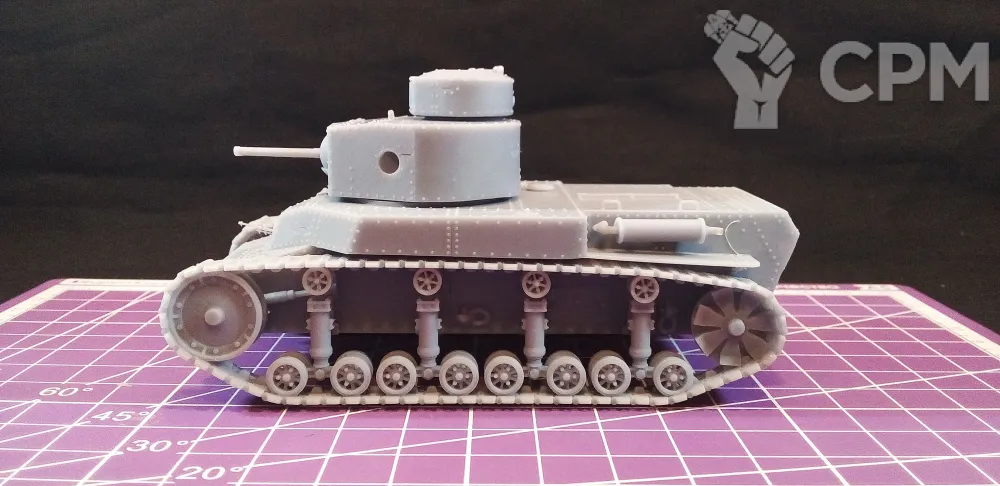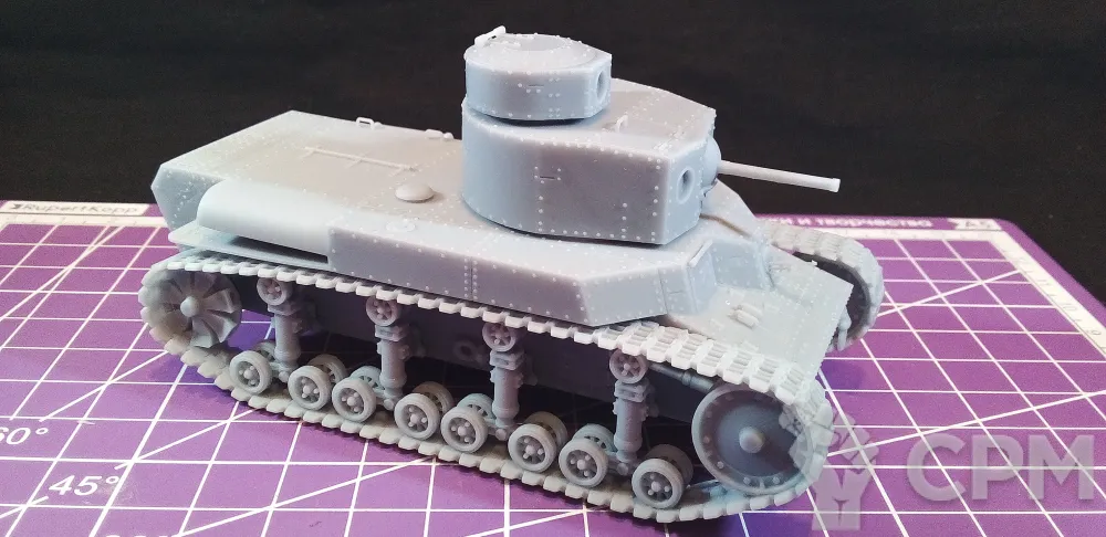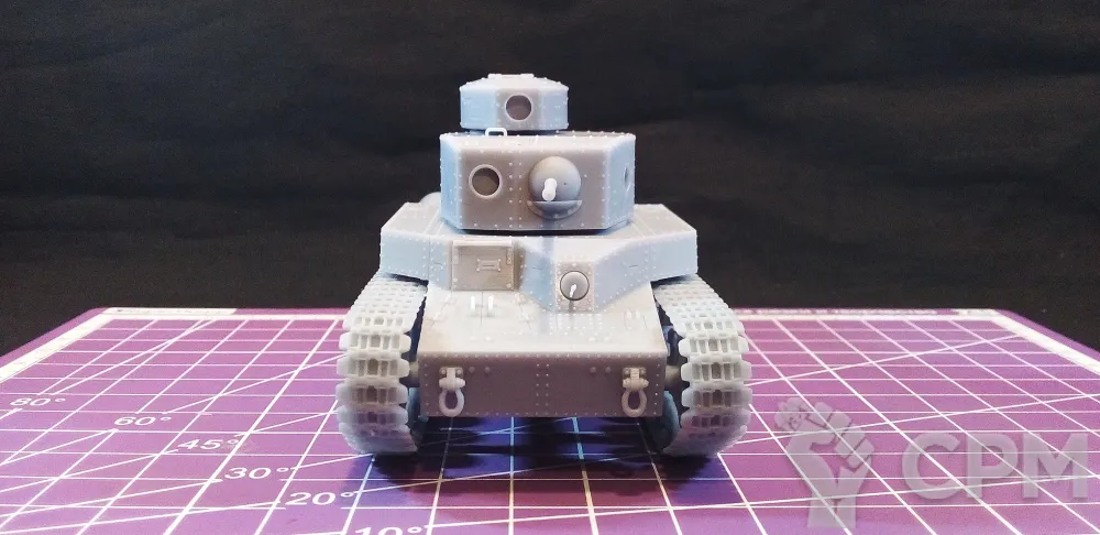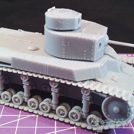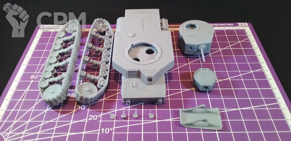 Модель состоит из корпуса, гусениц, основной башни, пулеметной башни, "хвоста" для преодоления траншей, выхлопной трубы, а также пулеметов для корпуса и башен (4 шт.). Модель снята с поддержек, промыта и засвечена ультрафиолетом. Могут наличествовать следы от поддержек - аккуратно удалите их модельным ножом, либо шкуркой.
