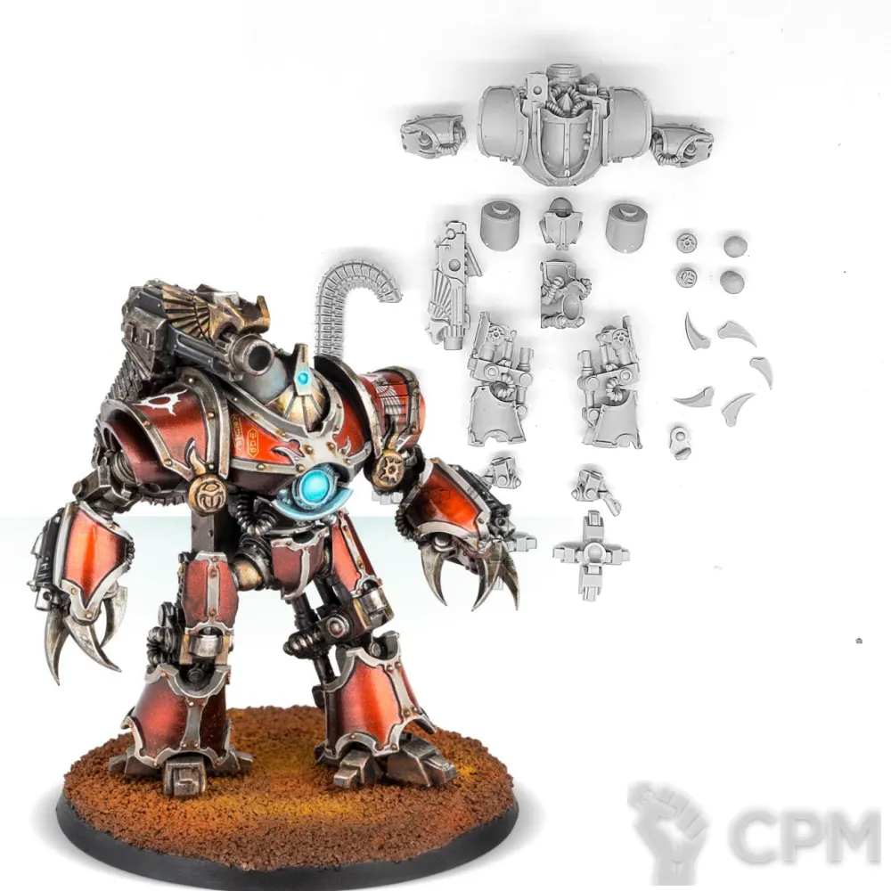 Собакен пришел. На качество литья не буду жаловаться - смола и крупные детали дружат никак. Но недостающие детали - это нехорошо. Точно нет запалов на втором инферно кэнон, нет второй крышки плеча над сервитором, нет одного места крепления силового кабеля к орудию и вызывает подозрения одиночная деталь чьё назначение я пока не нашел.