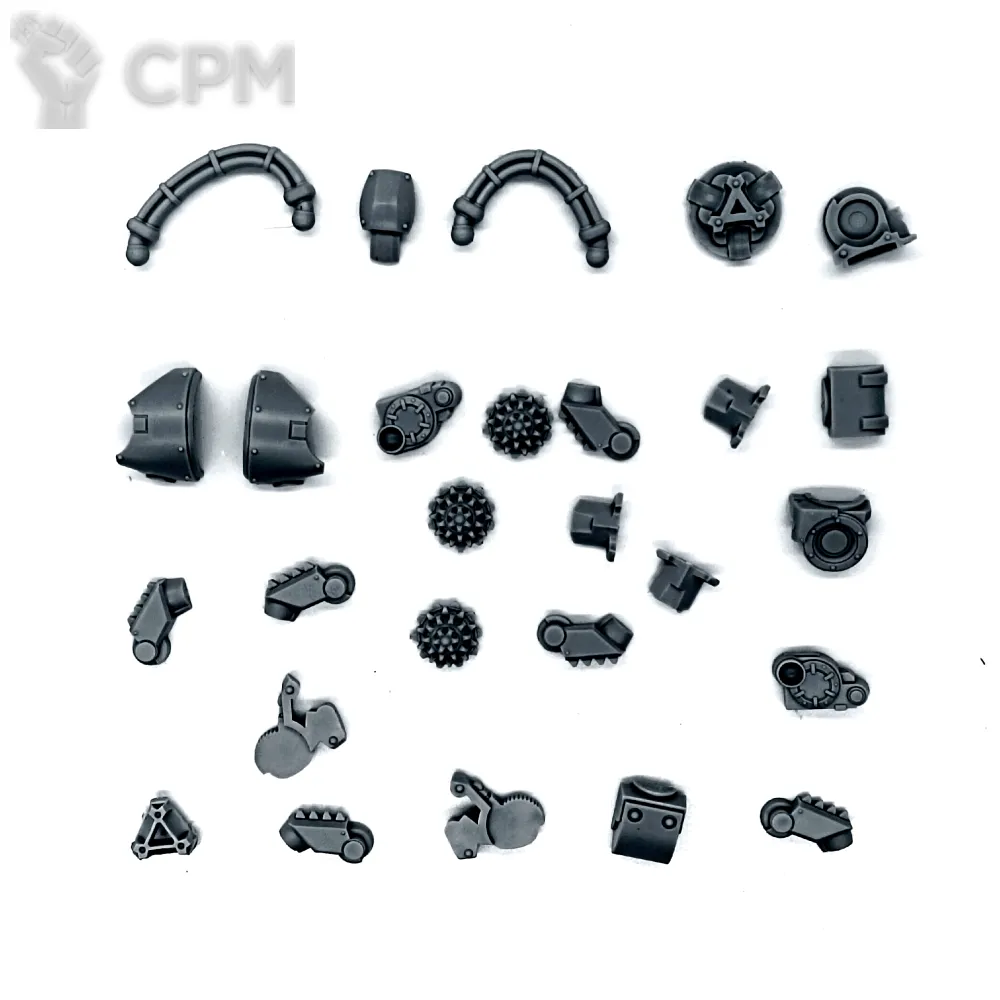 Собакен пришел. На качество литья не буду жаловаться - смола и крупные детали дружат никак. Но недостающие детали - это нехорошо. Точно нет запалов на втором инферно кэнон, нет второй крышки плеча над сервитором, нет одного места крепления силового кабеля к орудию и вызывает подозрения одиночная деталь чьё назначение я пока не нашел.