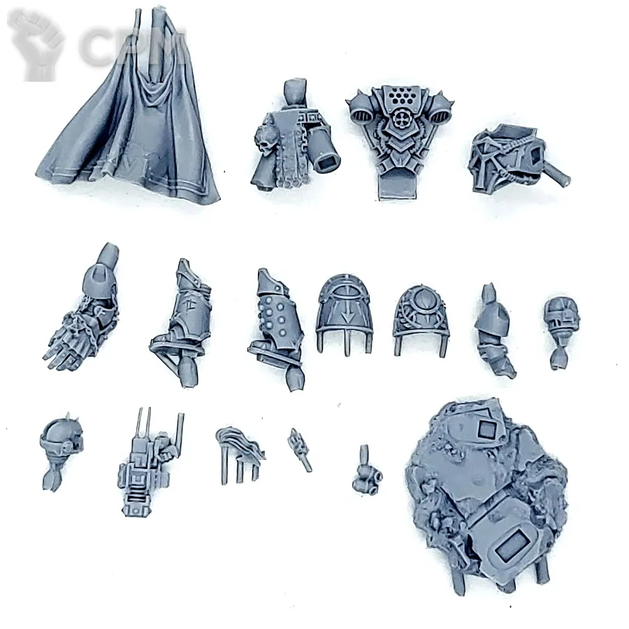 Собакен пришел. На качество литья не буду жаловаться - смола и крупные детали дружат никак. Но недостающие детали - это нехорошо. Точно нет запалов на втором инферно кэнон, нет второй крышки плеча над сервитором, нет одного места крепления силового кабеля к орудию и вызывает подозрения одиночная деталь чьё назначение я пока не нашел.