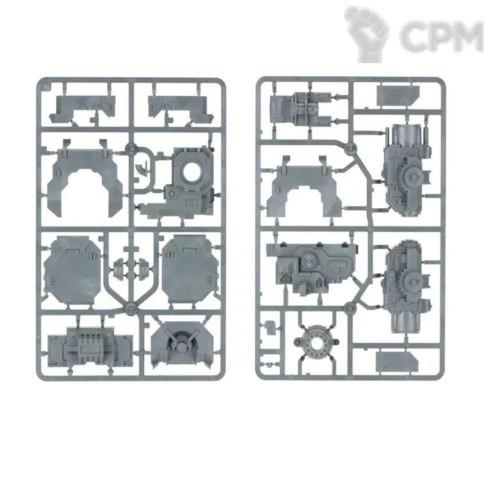 Собакен пришел. На качество литья не буду жаловаться - смола и крупные детали дружат никак. Но недостающие детали - это нехорошо. Точно нет запалов на втором инферно кэнон, нет второй крышки плеча над сервитором, нет одного места крепления силового кабеля к орудию и вызывает подозрения одиночная деталь чьё назначение я пока не нашел.