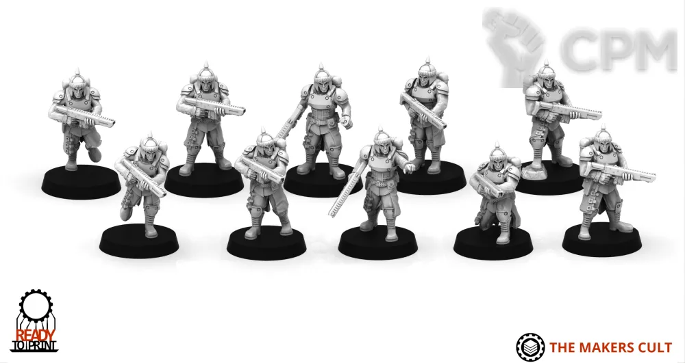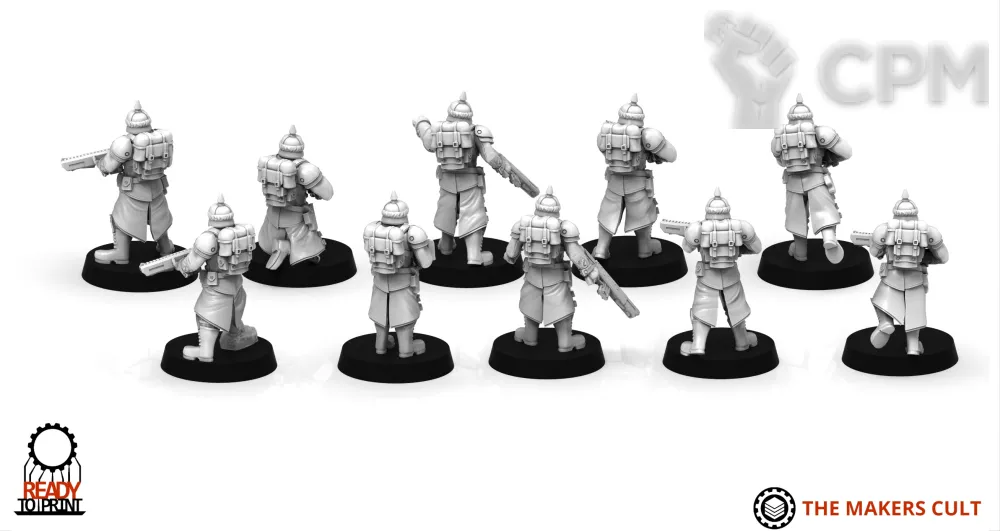 Но есть но, про которое я совсем позабыл. Печать - не литьё, масштаб задаётся автором стл, печатник может его подогнать к масштабу оригиналов, но надо его об этом попросить. Я забыл. Как итог - у меня теперь есть отряд девчёнок-гвардейцев, которые ростом выше примарисов. Мой косяк, но всё равно обидно. Обговаривайте с печатником нюансы, не будьте как я.
