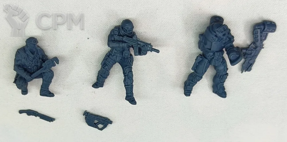 Миниатюры напечатаны на 3d принтере с высоким разрешением из прочной модельной смолы. К миниатюрам идут бесплатные пластиковые базы под форм-фактор модели.