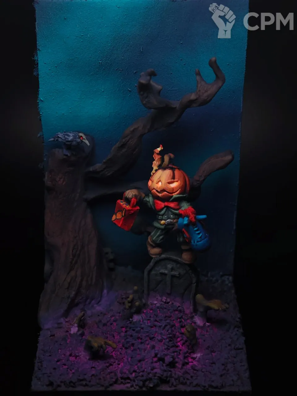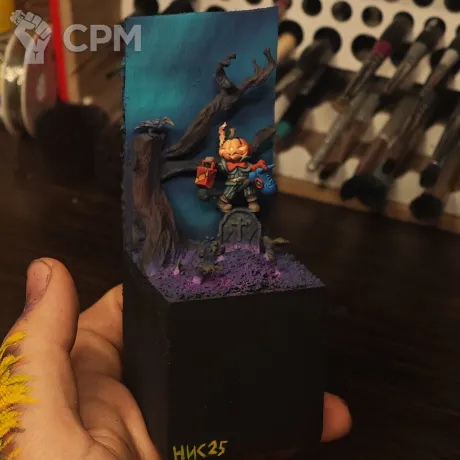 Винеточка для Pumpkin Panic контекста. Модель headless halfling (альт гильдейской эффиги) поднимает мертвецов при помощи конфет :)