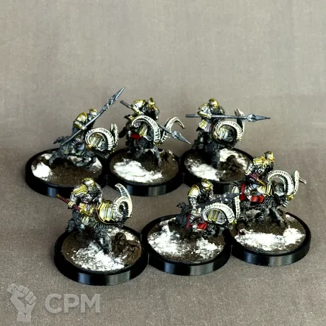 4 с копьями, 2 с топорами.