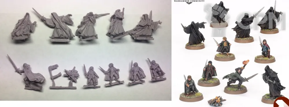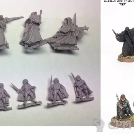 Набор 10 моделей, Фродо, Сем, Мерри, Пипин, Арагорн, Король колдун и 4 призрака кольца.